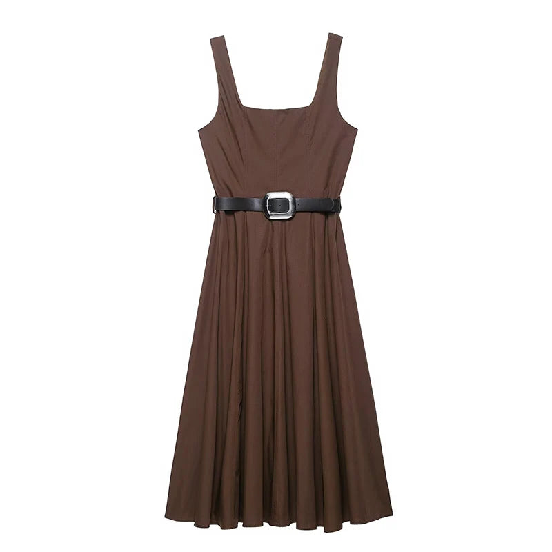 2026 Fashion With Belt Long Dresses for Women Summer Sleeveless Slip Dress Vintage Female Elegant Party Dresses