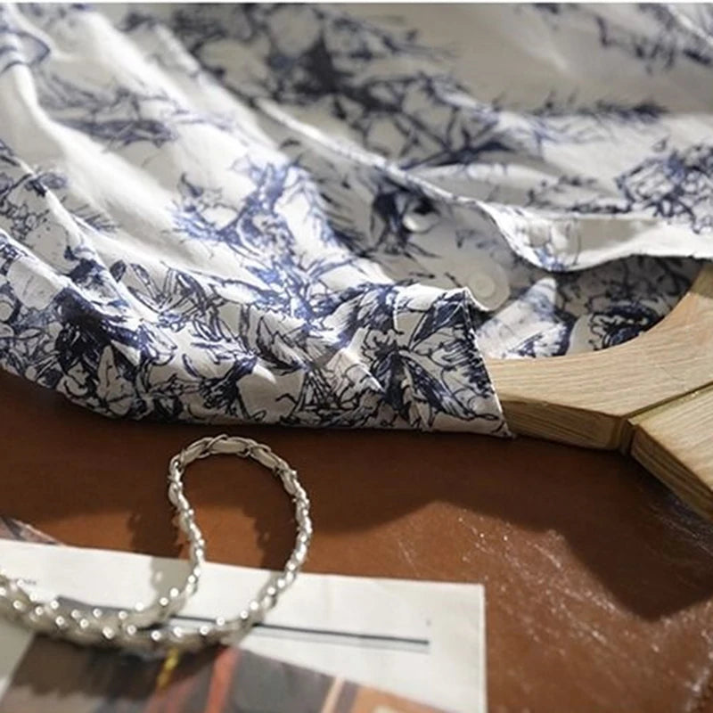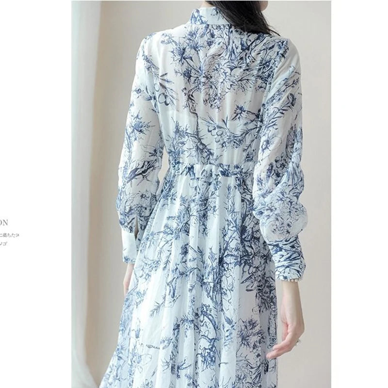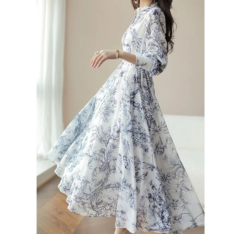 2026 Spring Chinese Style Ink Painting Printing Midi Dress Women Long Sleeve French Elegant Dresses Korean Fashion Y2k Clothing