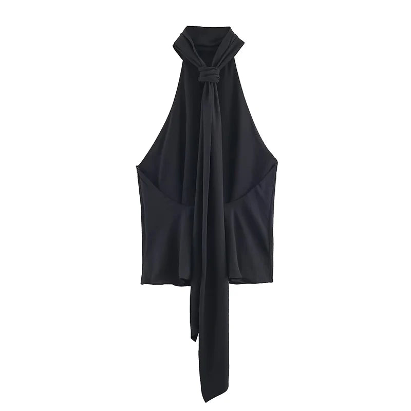 New Halter Tops Fashion Backless Bow Elegant Crop Top Woman 2025 Sleeveless Ruched Short Tops For Women Sexy Party Tops