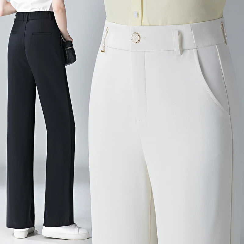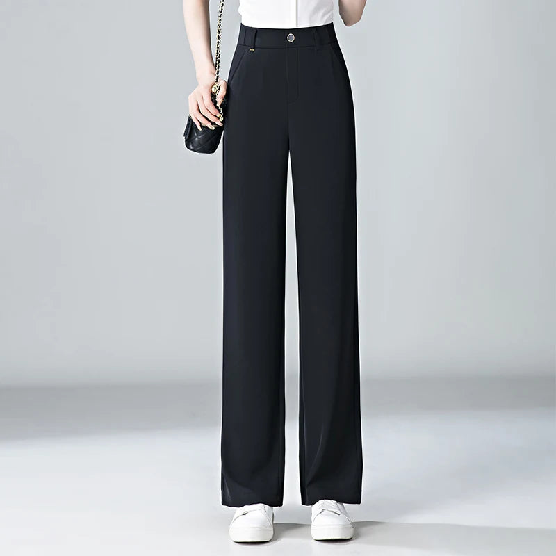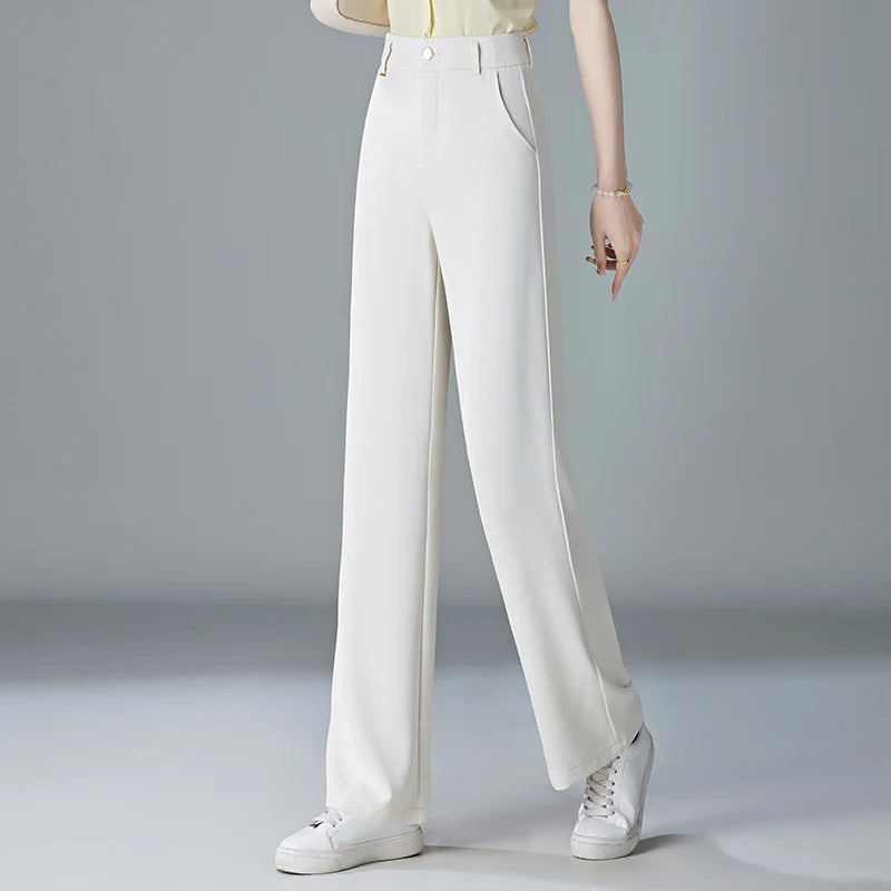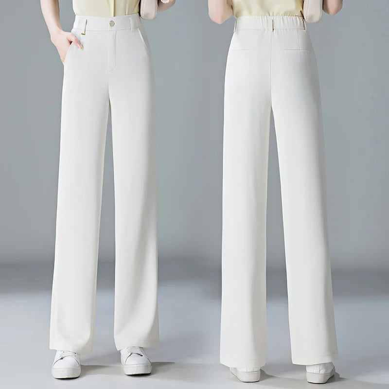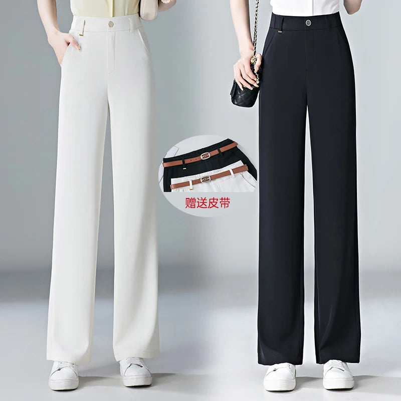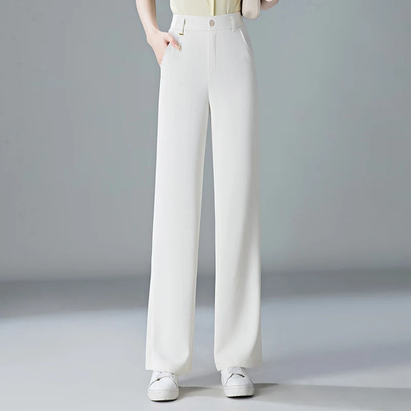 white Straight leg Pants Women's Summer Thin ice silk 2026 new high Waisted drape Slimming Loose Casual Straight cylinder Pants