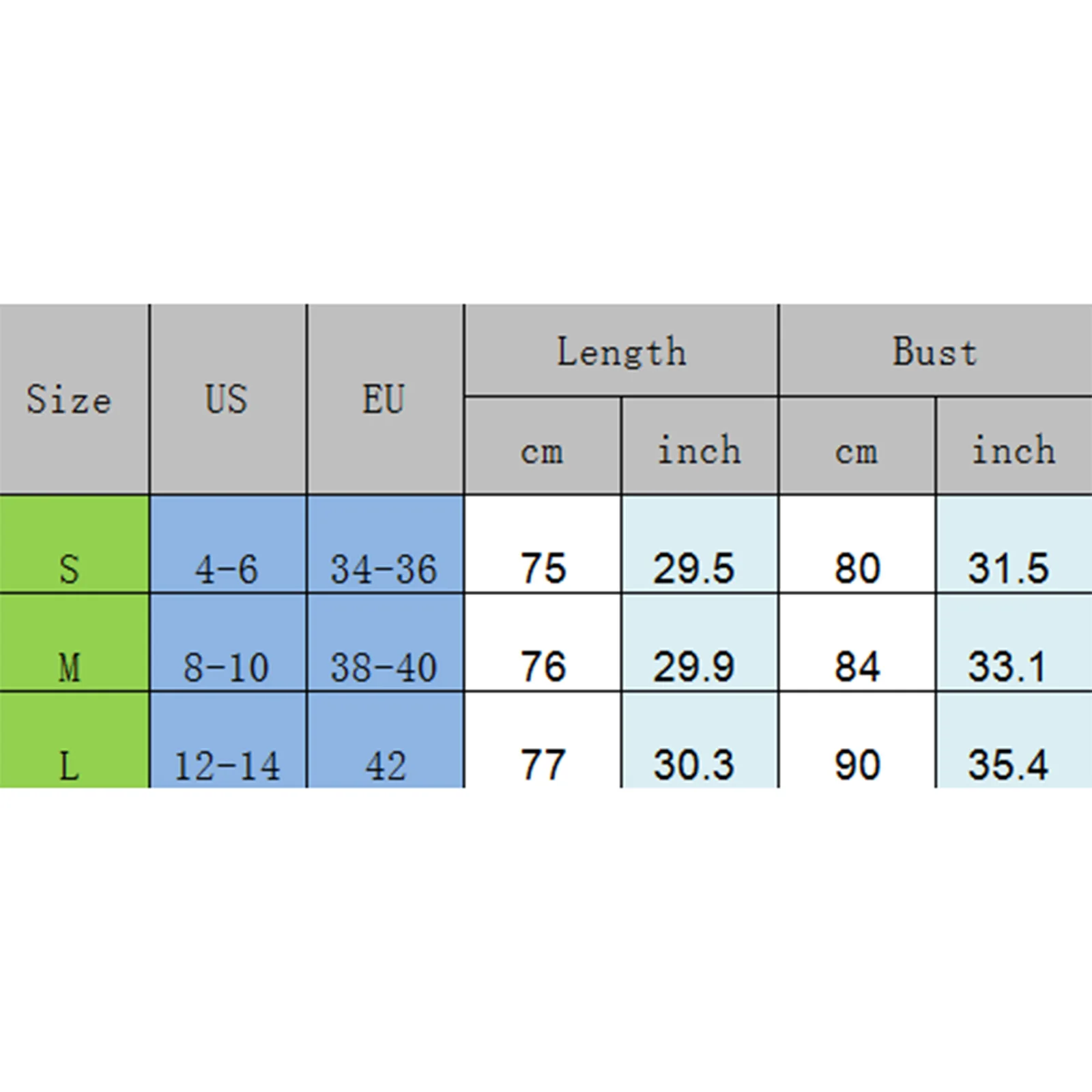 L Length: 30.3 Bust: 35.4