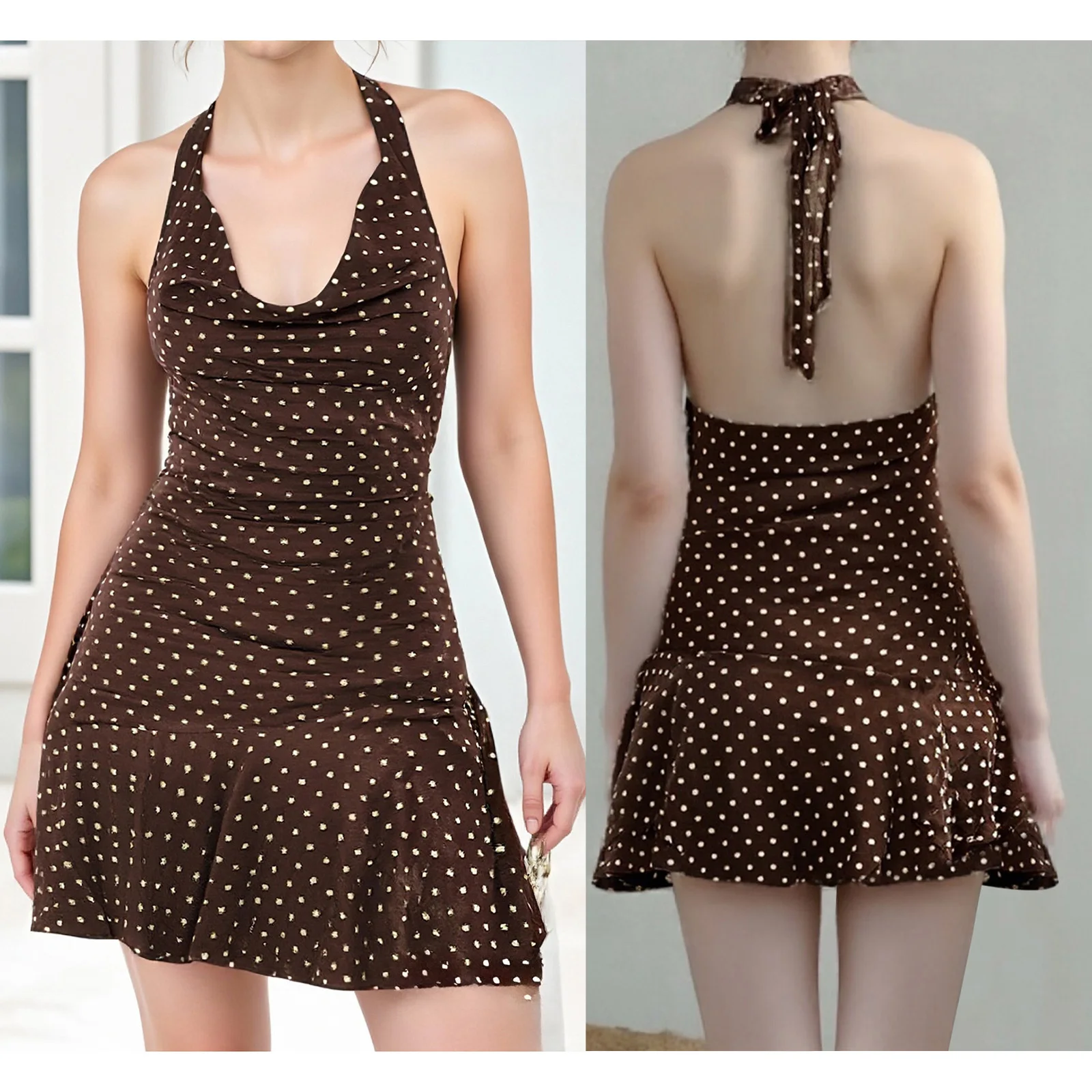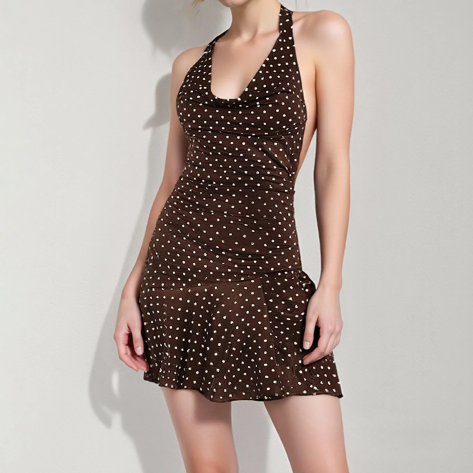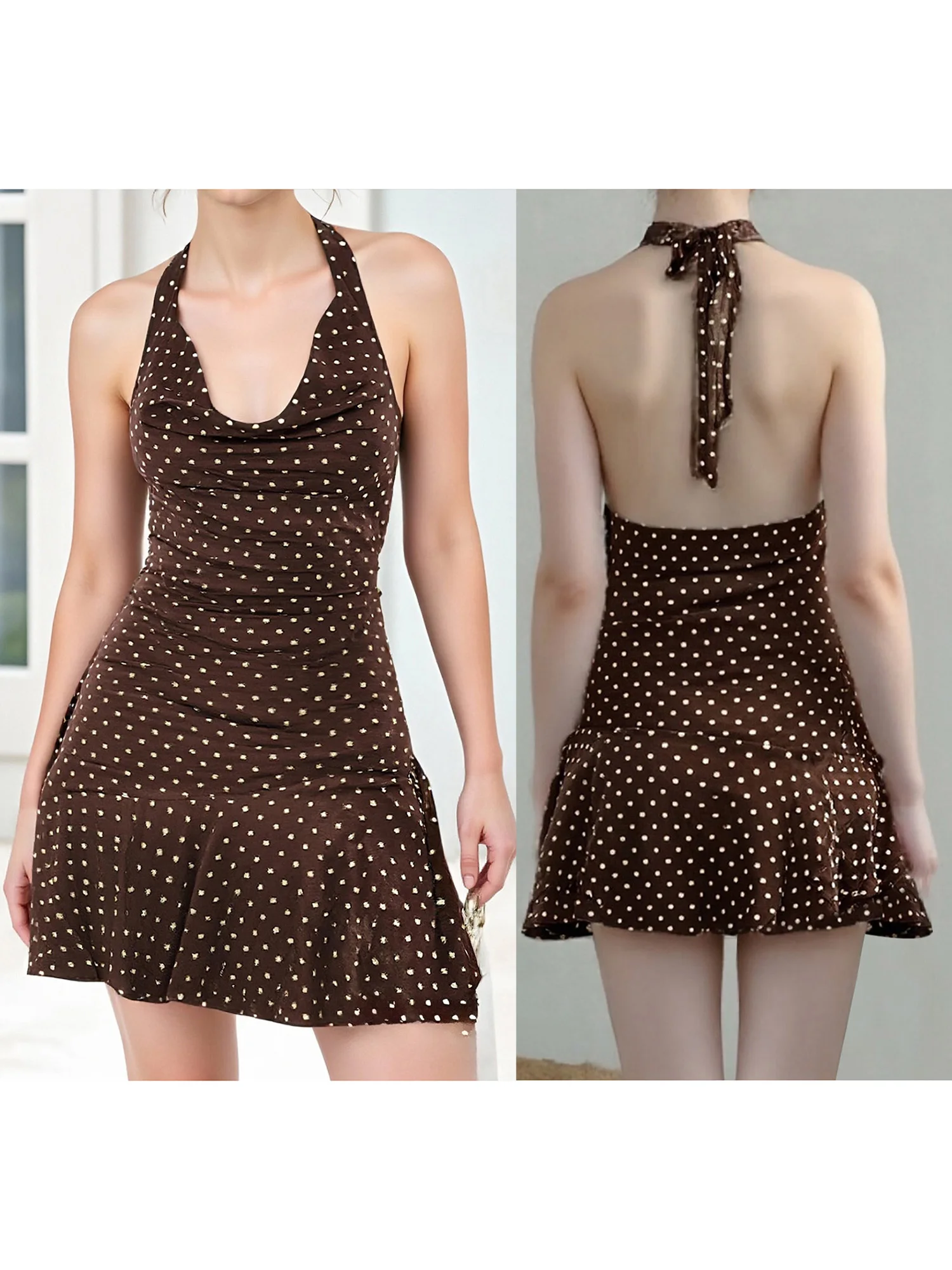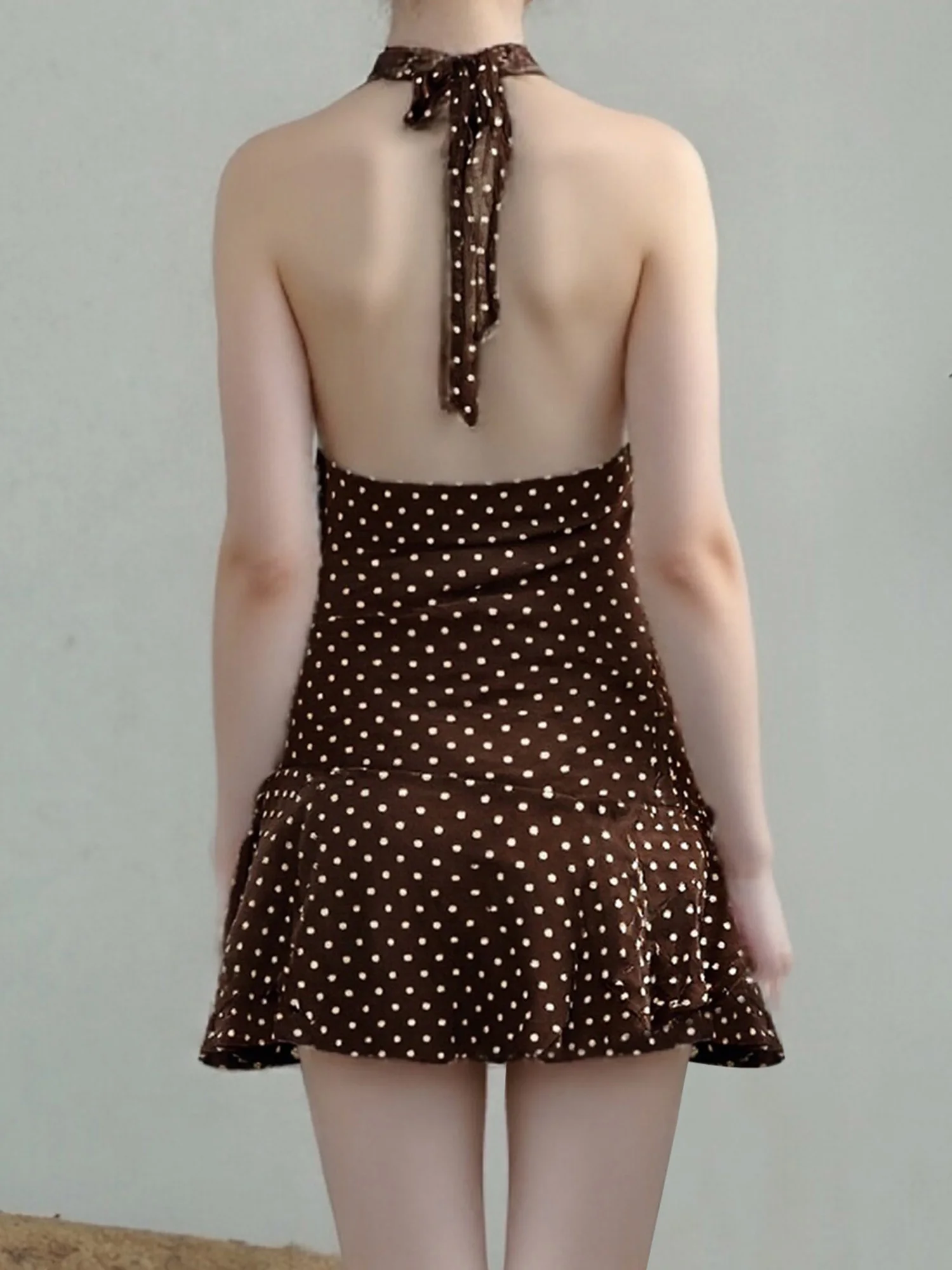 Women's Summer Tank Dress Sleeveless Open Back Halter Neck Dot Print DressSize (cm):