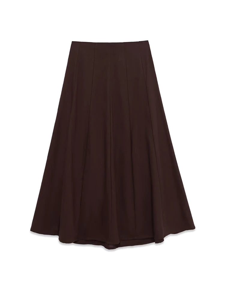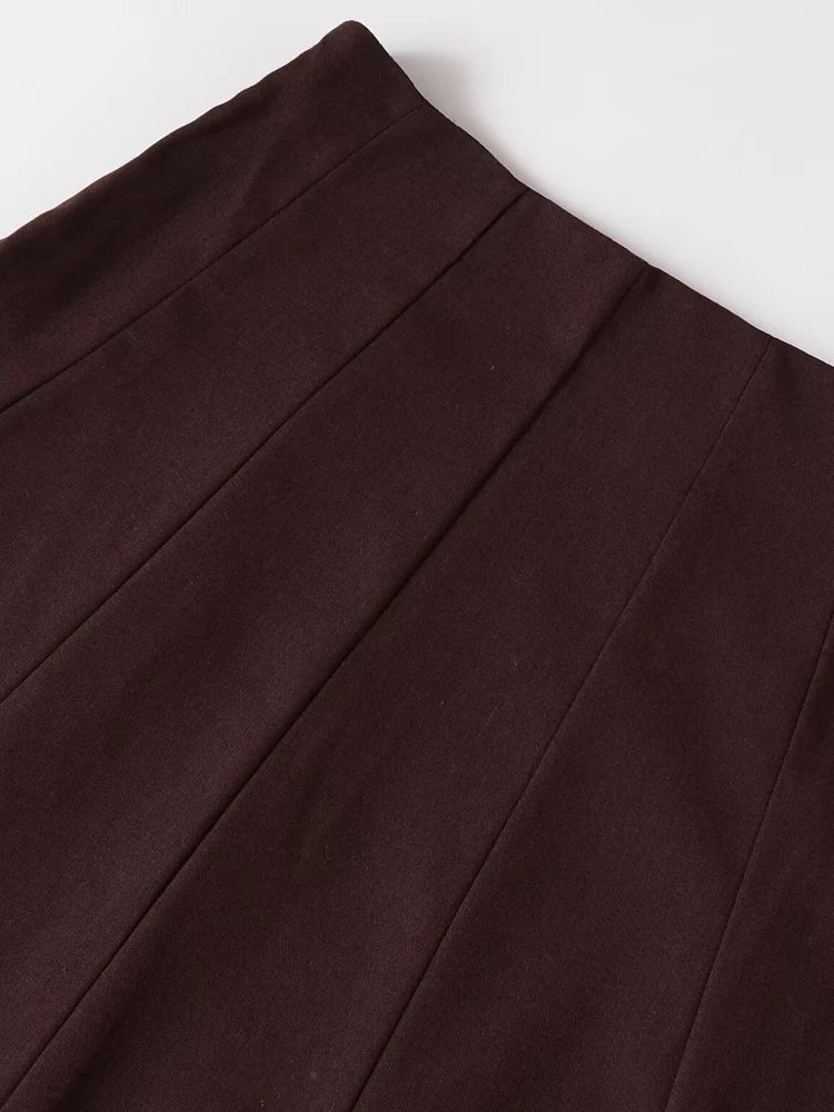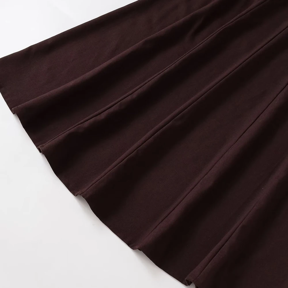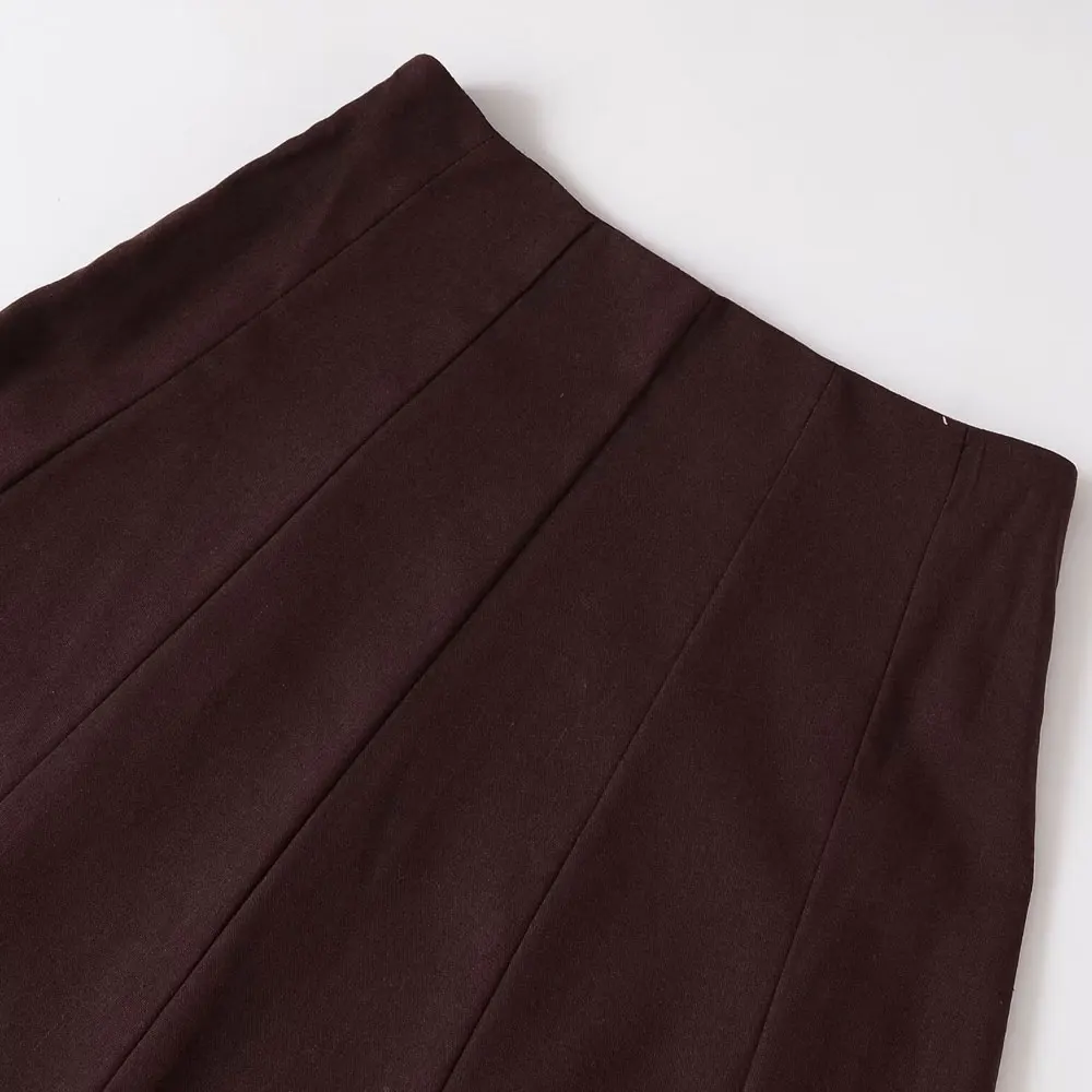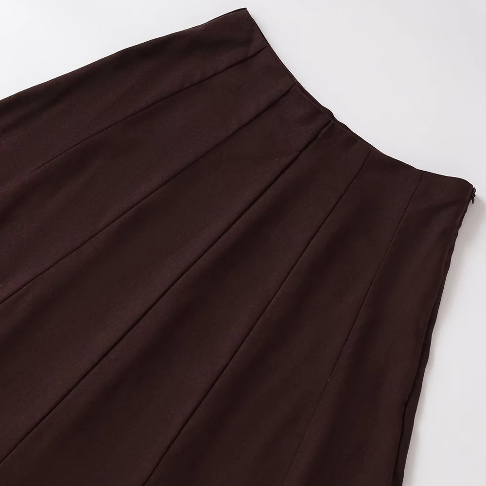 Women's High Waist Brown Pleated Midi Skirt with Side Zipper Female Skirts for Elegant Fashion