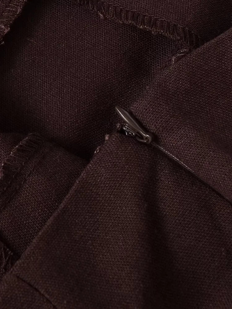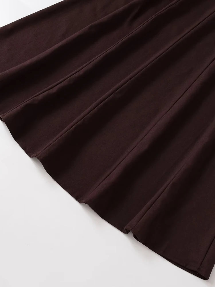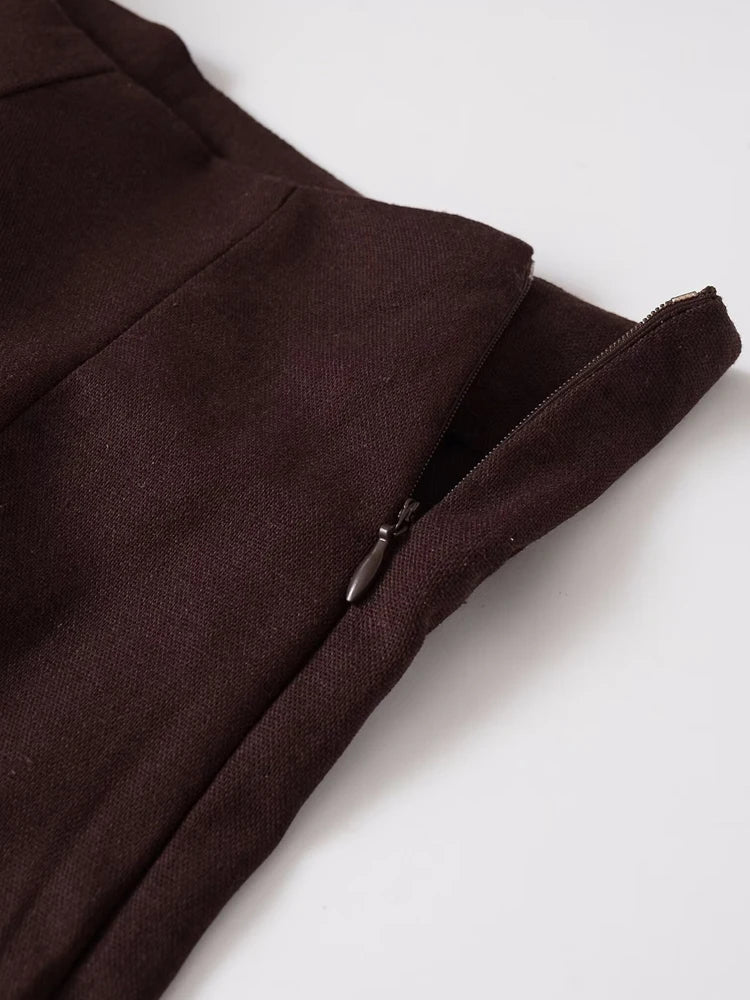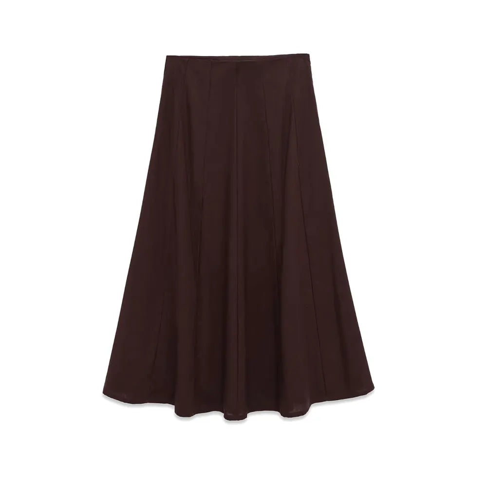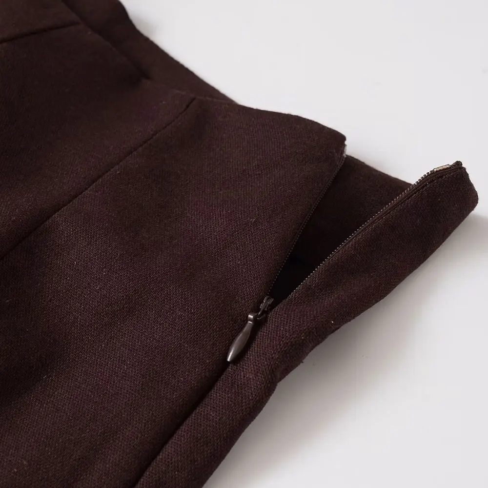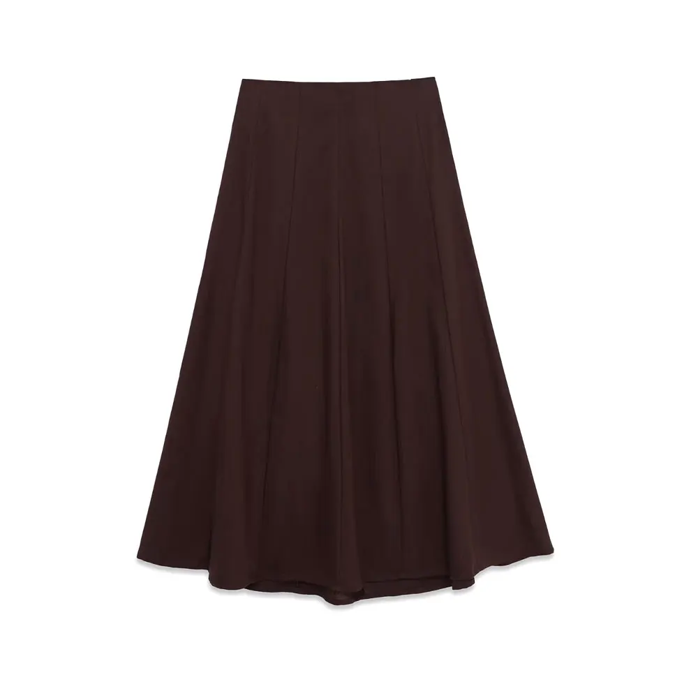 Women's High Waist Brown Pleated Midi Skirt with Side Zipper Female Skirts for Elegant Fashion