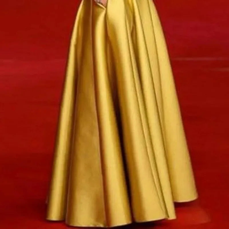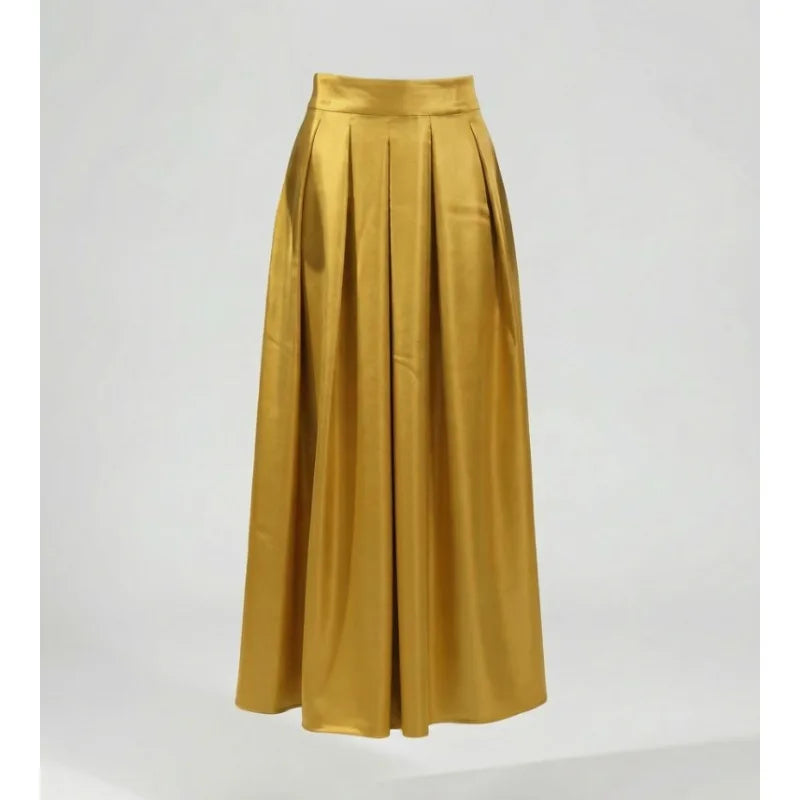 Yellow Satin Pleated Skirts for Women A-line 2026 Trendy High Waist Pockets Evening Party Long Skirt Woman Clothes 195443